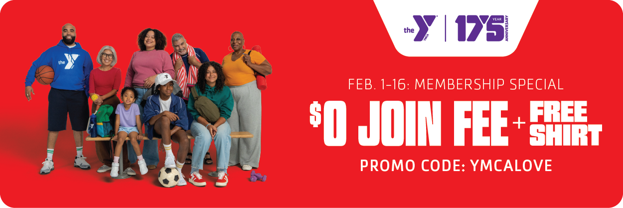 Spread the love this February! From February 1-16, when you join the Y, you’ll pay NO JOINING FEE and get an exclusive FREE shirt to commemorate the occasion. All new members, and members who refer their friends, are eligible for the free tee — not to mention, you’ll both save 20% each month through our Member Referral program! Join online with promo code: YMCALOVE.
