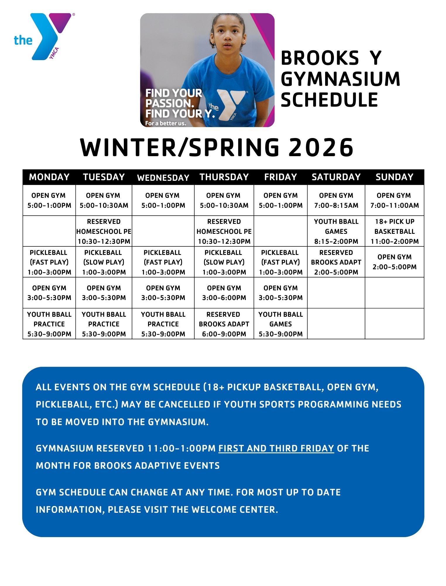 Urban courts aren’t just for sports – they’re the heart of the neighborhood, buzzing with life and laughter. Our new Urban Court at the Brooks Family YMCA will be the ultimate hangout, where we can all get moving and mingle, enjoying outdoor activities that bring us together. Some of the planned programs we plan to offer include adult leagues like basketball, pickleball, soccer, flag football and volleyball. Our youth programs will include basketball, volleyball, flag football, soccer, Home School P.E., sports camps and enrichment programs. Brooks Adaptive Programs will also be included in our offerings as a partner.